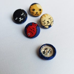 Bottoni rivestiti in stoffa giapponese gatti e pesci 13mm