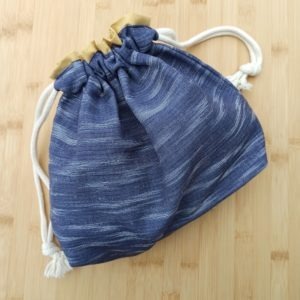 I kinchaku hanno una federa che può essere rivoltata e usata come esterno, rendendo il sacchetto double-face. Sono comodissimi per i viaggi o la palestra per dividere intimo, calzini e altro. Vanno bene per l’asilo o i centri estivi.