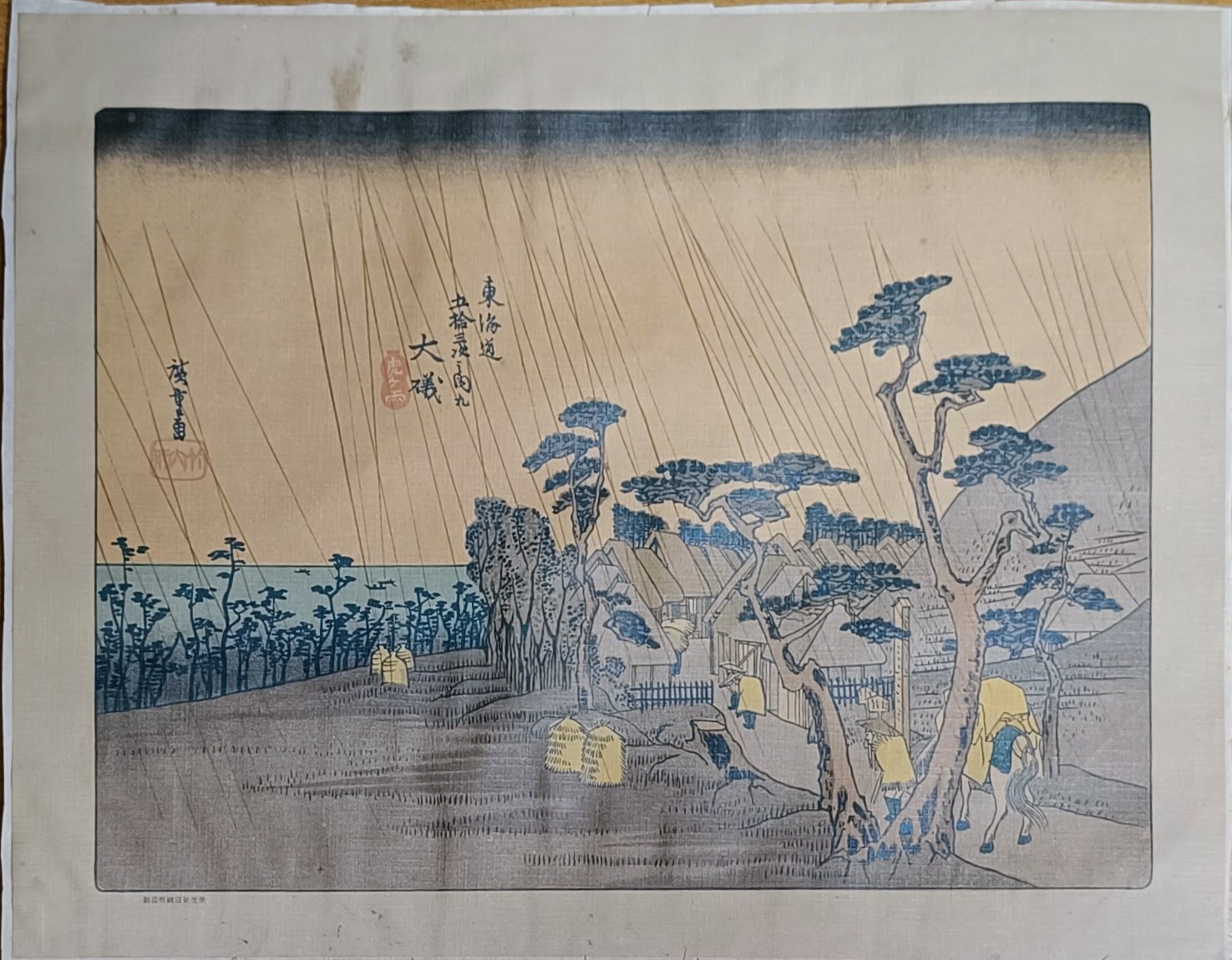 Stampa dell’ottava stazione “Oiso“, conosciuta anche come “Pioggia su una città costiera”, dalle Cinquantatré Stazioni del Tōkaidō di Utagawa Hiroshige.